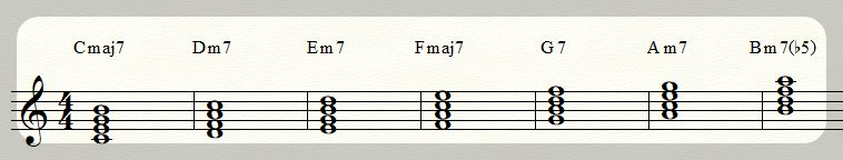 Cmaj7,Dm7,Em7,Fmaj7,G7,Am7,Bm7(b5) 7개 코드만으로